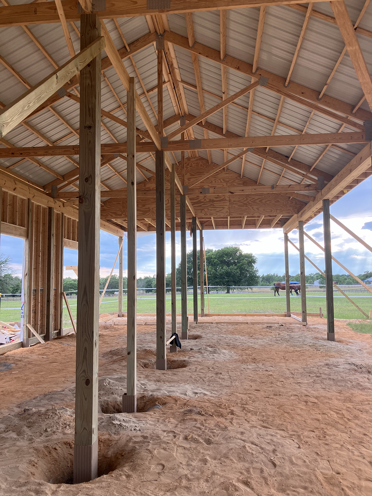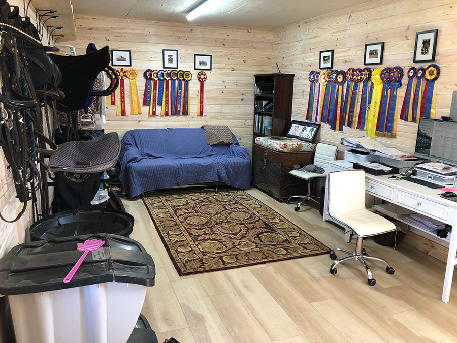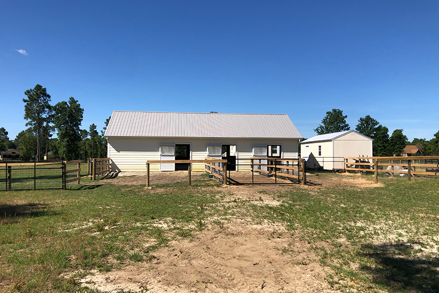 We have decided to do a 60 by 24 foot footprint. It will have three stalls with a grooming stall or grooming bay. That’s 12 by 24. That will be multipurpose. It’s going to hold two weeks worth of hay. And then the rest of the space is going to be available for grooming and tacking.